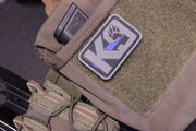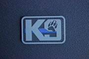 K9 thin blue line patch in black, gray, and blue. PVC patch. Hook and loop back, 2.25"x1.50".