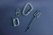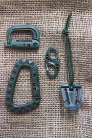 This set is designed to help you manage and retain comm cables, antennas, gloves, flex-cuffs, etc. All bits come in ranger green.